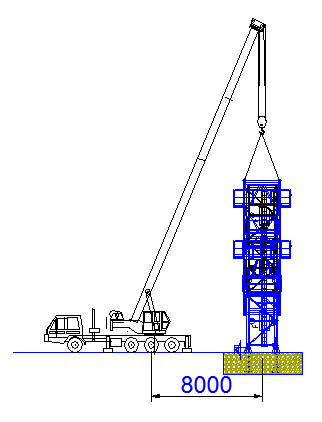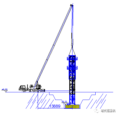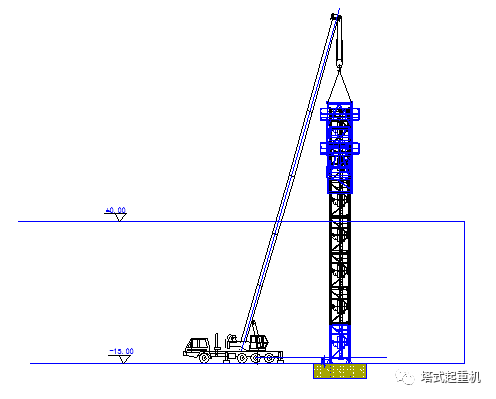 图1 基础处于零米层汽车吊就位立面图