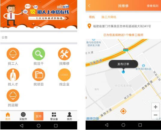 近日,中塔在线2.0版本正式上线运营。在前期设备管理功能的基础上,七大刚需服务板块正式上线,具体由“设备管理、共享维修、找吊装、劳务共享、设备共享、大数据征信、信息服务”构成。其中,共享设备,共享劳务、共享维修作为刚需、高频的业务板块上线在业内引起巨大反响,中塔在线通过整合了社会闲散资源和信息,企业可以免费在中塔在线平台上发布所需设备(含标准节等周转件),劳务以及维修等服务需求,平台基于LBS就近原则派单匹配,实现供需的直接匹配,提高交易服务效率,降低各方成本,被业内称为塔机界的“滴滴”。